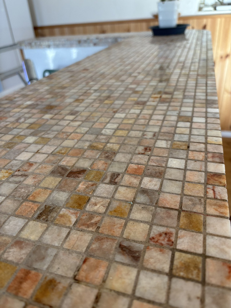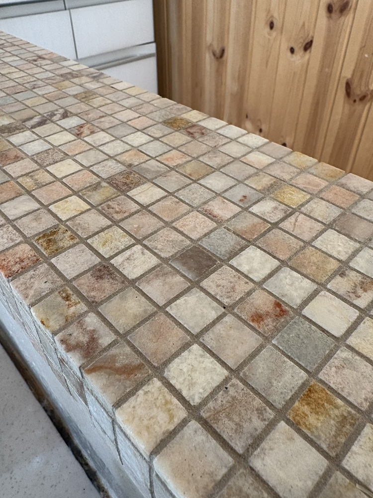 キッチンカウンターはとにかく水と汚れ、そして熱に強いことが大切です。タイルはそのすべてにおいて高い性能を持っています。